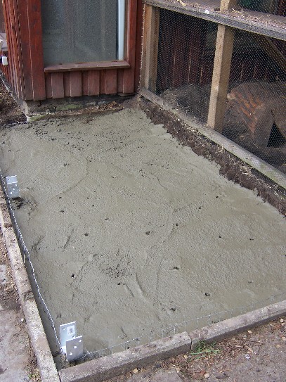 Leider hat dann natürlich Rasen keine Chance. Aus diesem Grund haben wir uns in diesem Jahr entschieden anzubauen. Circa 5-6 m² kommen dazu. Wieder haben wir eine Sohle gegossen. Diesmal habe ich die Arbeitsschritte fotografiert und will sie euch hier vorstellen. In einer ähnlichen Weise, kann man selbstverständlich auch ein normales Gehege bauen.